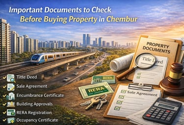 Buying property in Chembur, one of Mumbai’s rapidly growing residential hubs, is a significant financial decision. With rising property appreciation, redevelopment projects, and strong infrastructure growth, Chembur has become a preferred destination for homebuyers and investors. However, before finalising a deal, it is crucial to verify all legal and technical documents to avoid future disputes or financial risks. This guide outlines the important documents you must check before buying property in Chembur to ensure a secure and legally compliant transaction.