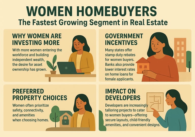 Traditionally, property buying in India was male-dominated. But today, women are emerging as one of the fastest-growing buyer segments in real estate, driven by financial independence and government incentives.
